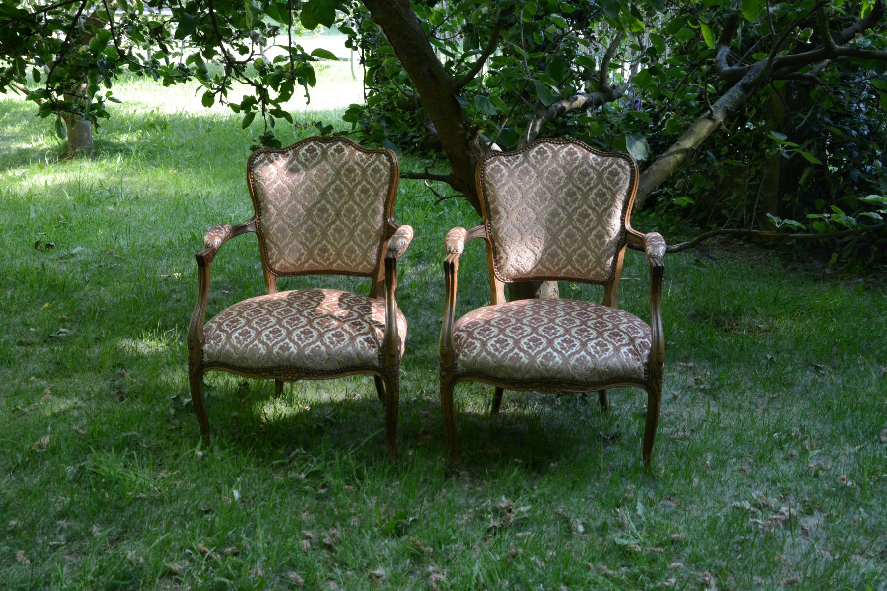 2 identieke Louis XV stoelen in een mooie velours bloemenstof