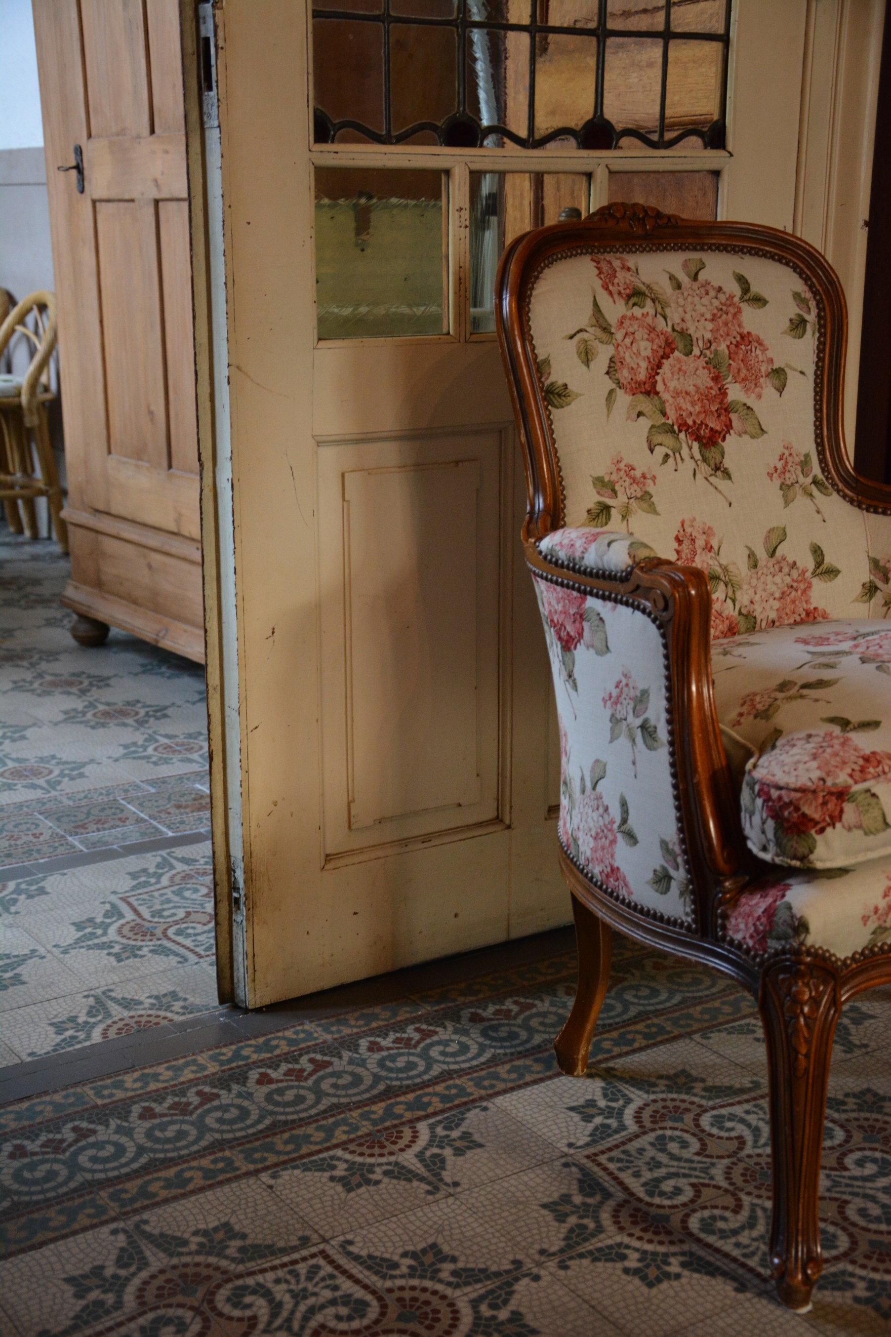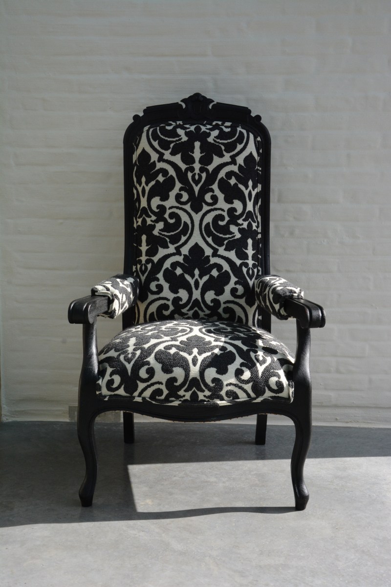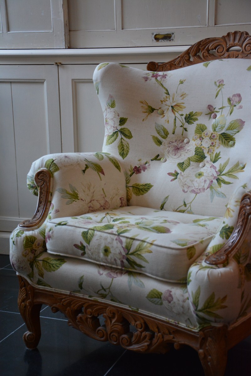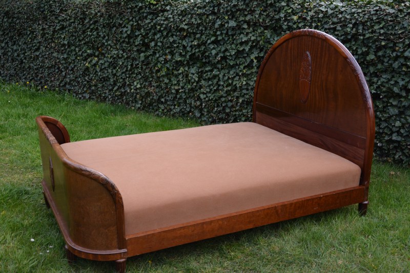 Dit prachtige bed werd op vraag van de klant in ere hersteld. Het bed van grootvader leeft terug verder… De boxspring werd volledig vernieuwd. Het kader werd verstevigd, nieuwe lattenbodem op maat gemaakt. De oude veren werden vervangen door pocketveren en afgedekt met paardenhaar en katoen. Stoffering met de stof Gitano van Designs of the…
