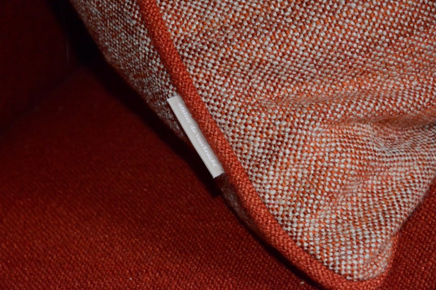 De kussens zijn op maat gemaakt, afgewerkt met een bies en gevuld met donsveren.