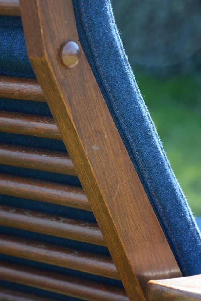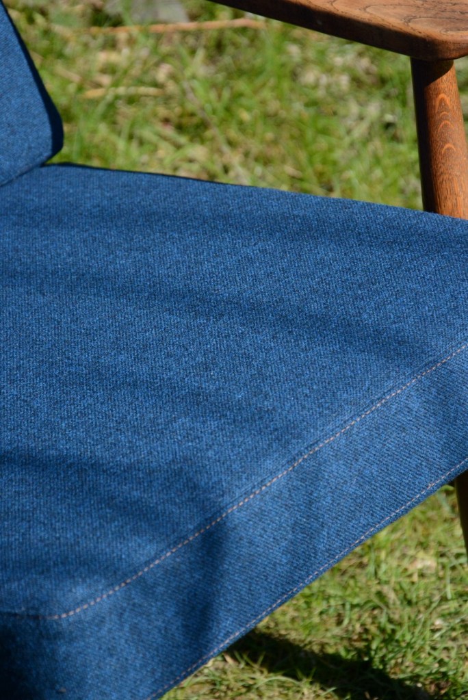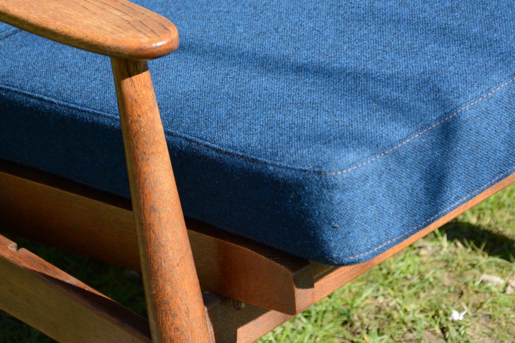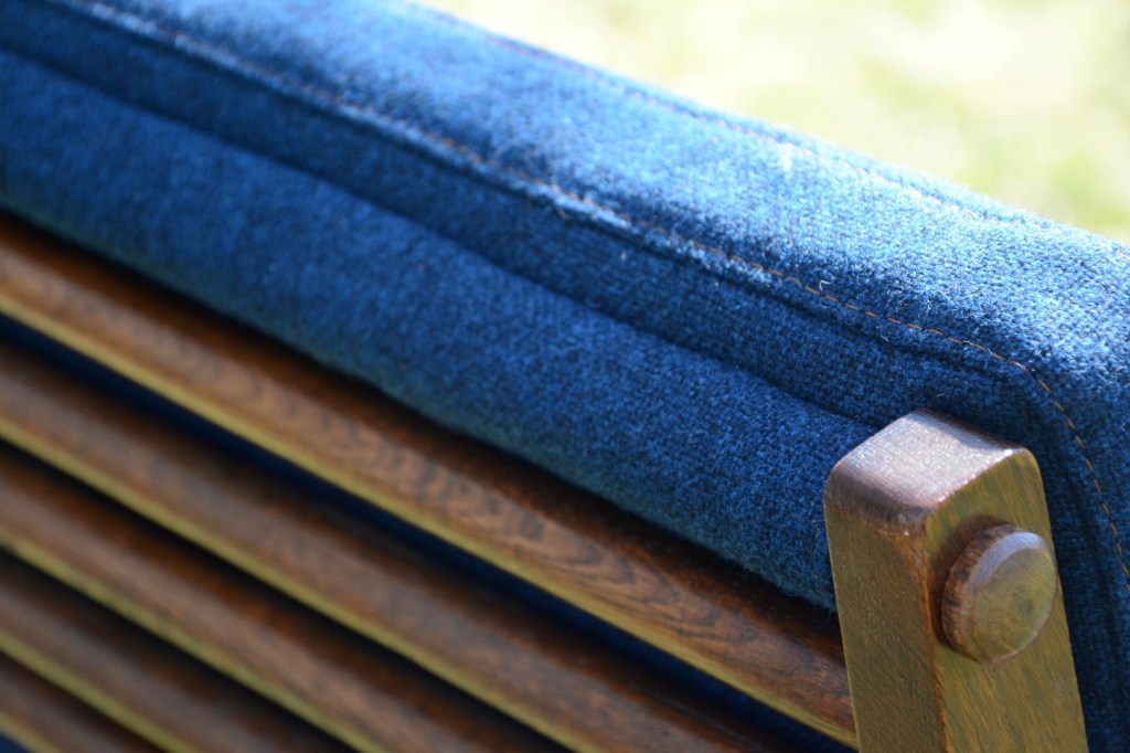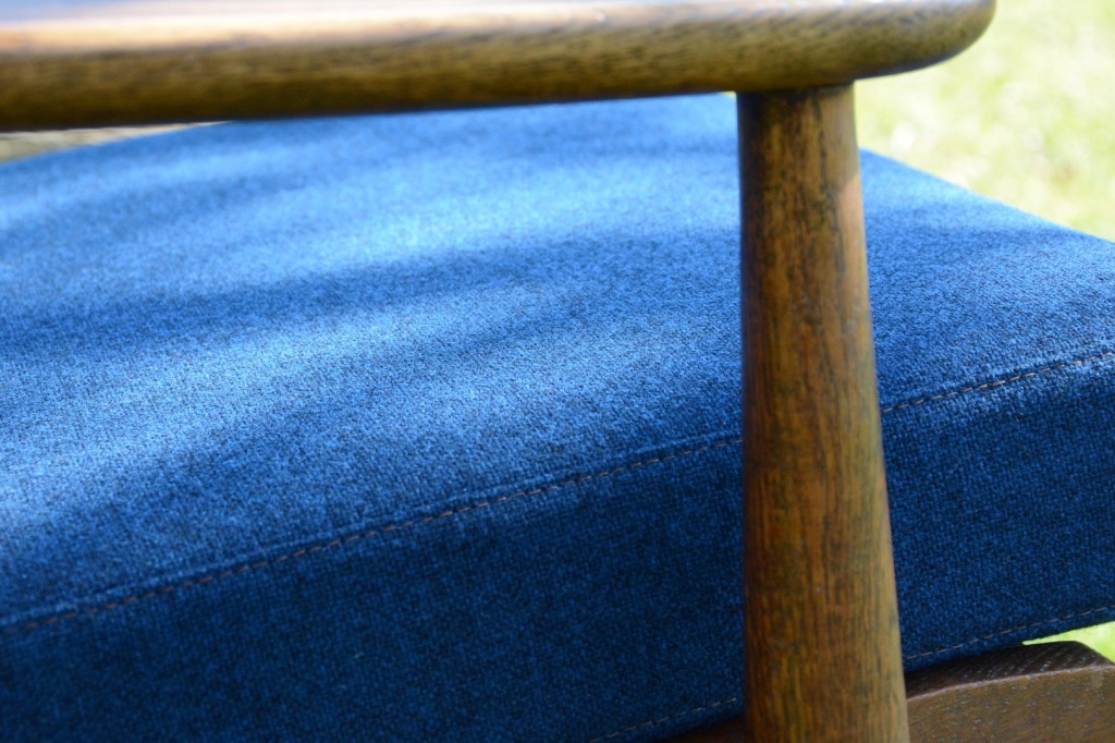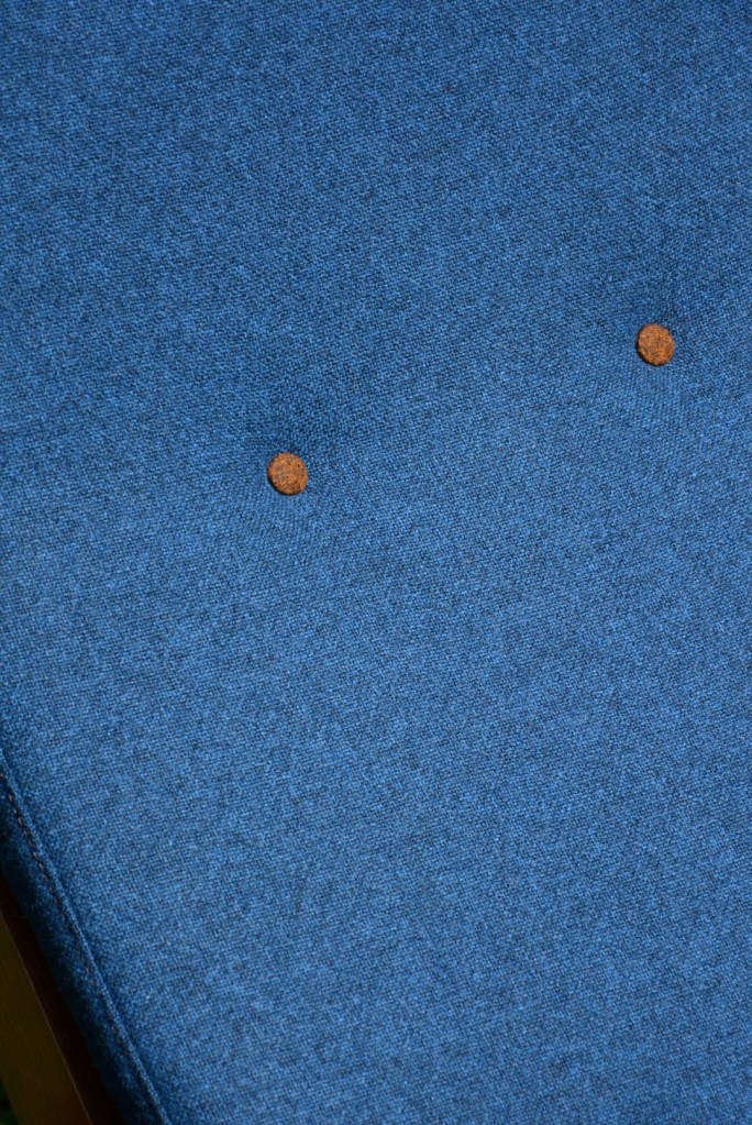 De klant koos voor een prachtige blauwe wollen stof (Tonica – Kvadrat) die perfect bij de zetel past. Het bijpassend stiksel en knopen maken de zetel helemaal af …