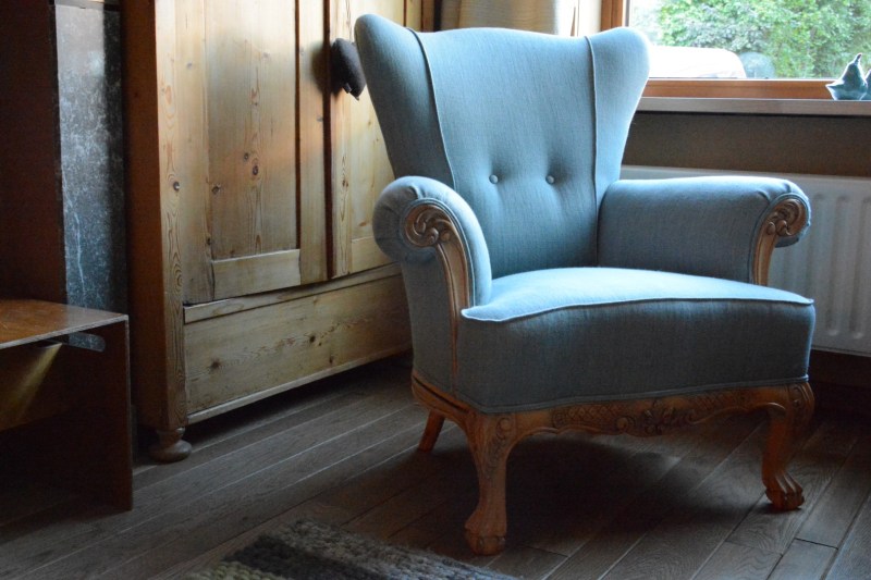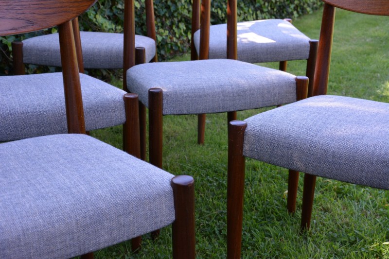 Nieuwe vulling en bekleding van 6 stoelen, stof Bruder& Co